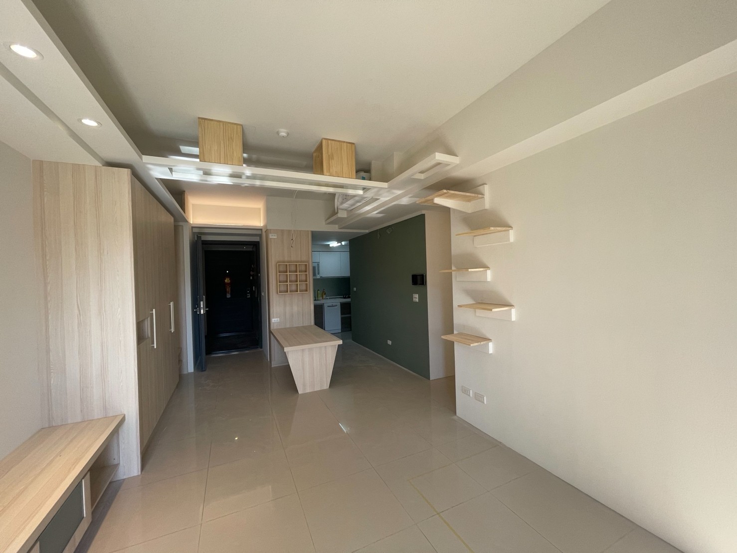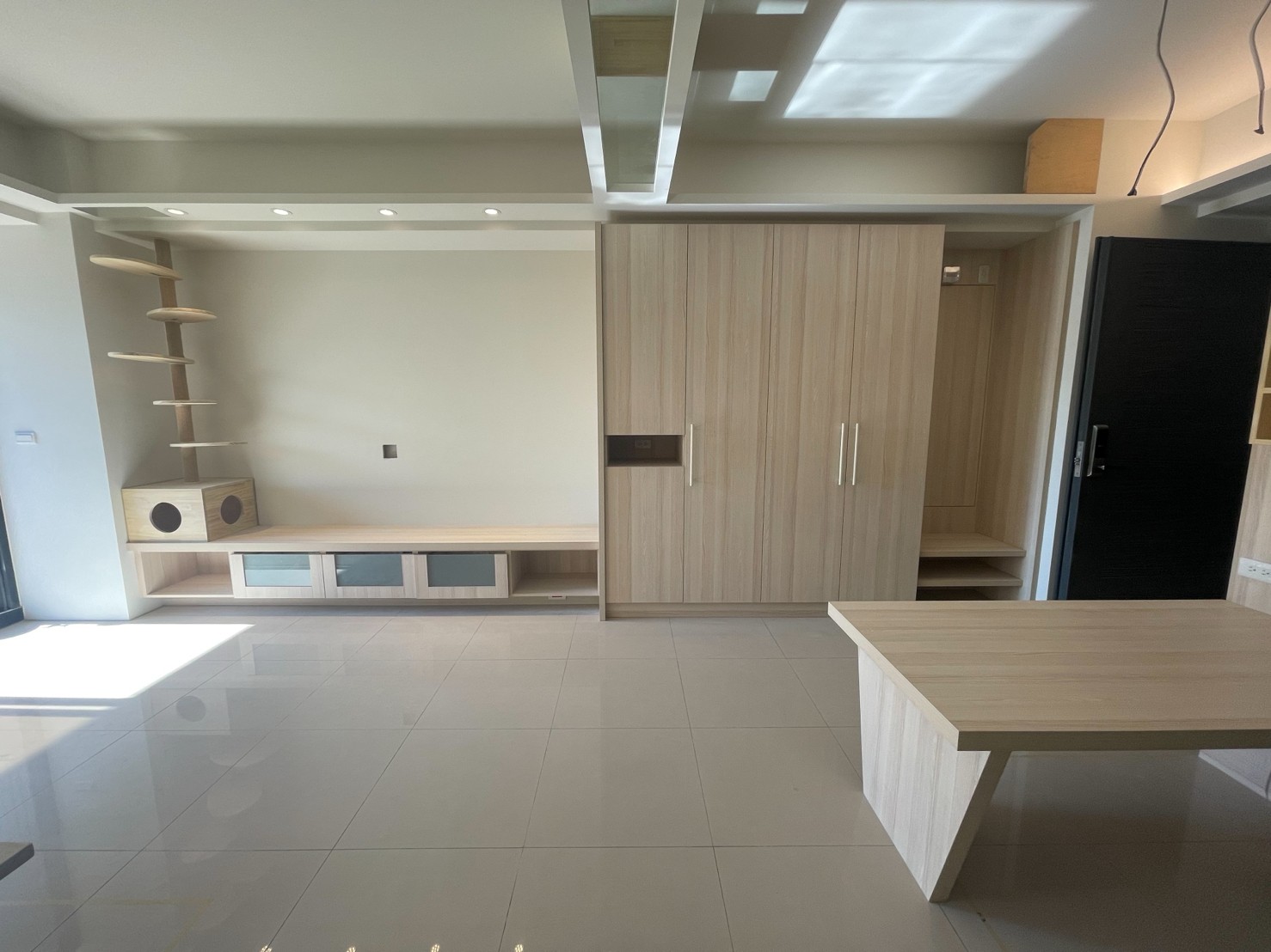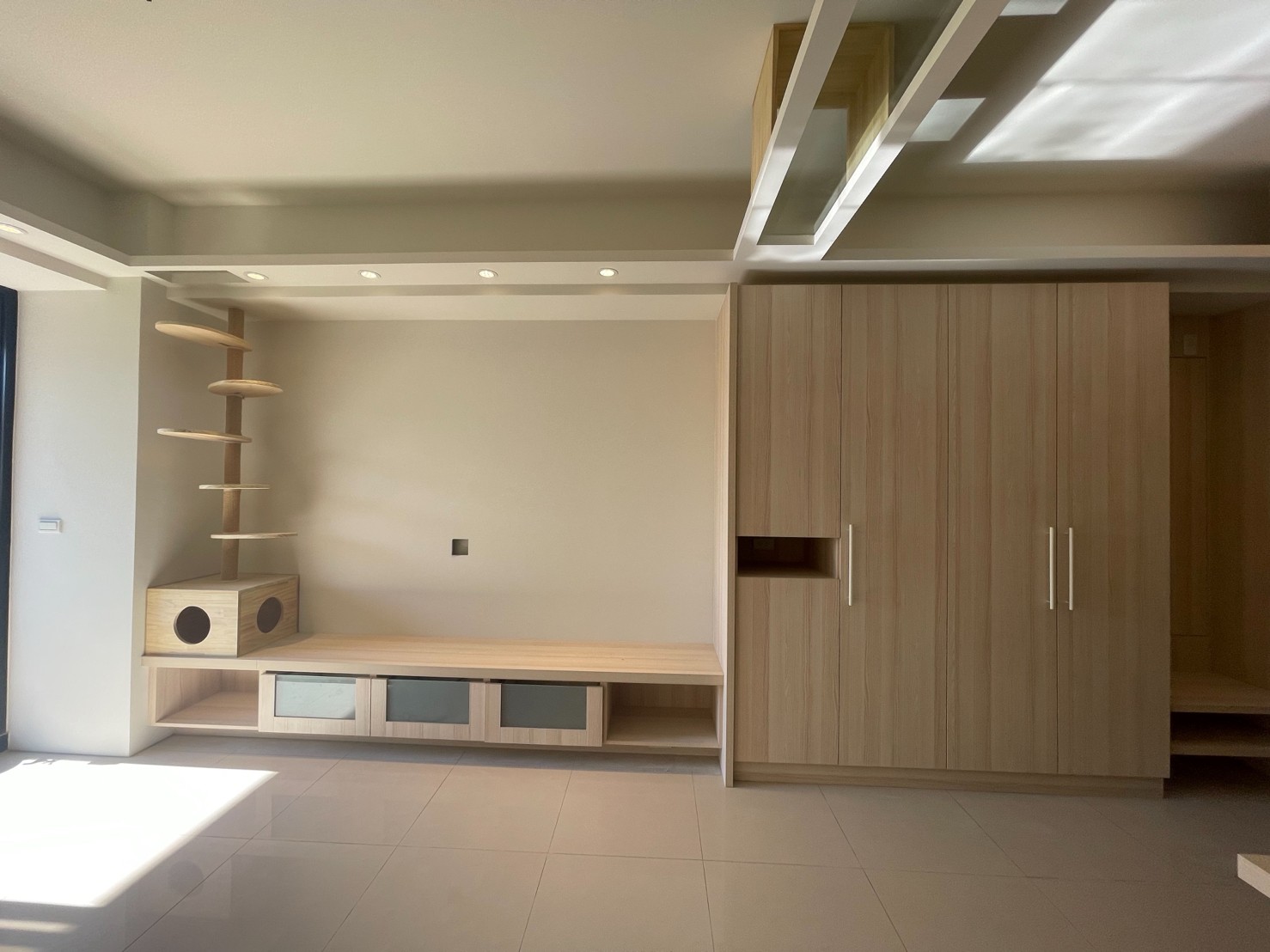 木作項目:全室天花板+木作天花層板貓隧道+跳板+TV櫃+TV牆