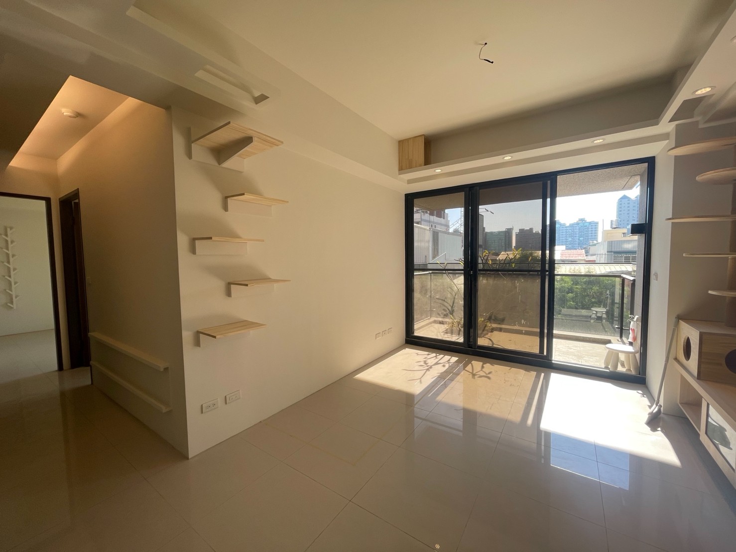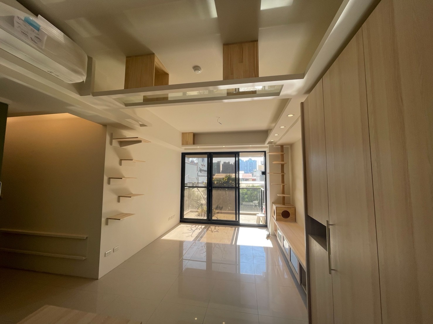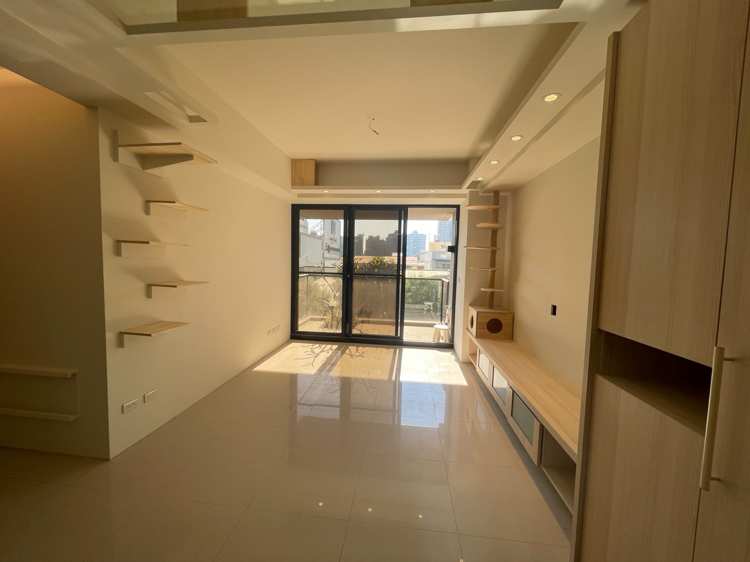 木作項目:全室天花板+木作天花層板貓隧道+跳板+TV櫃+TV牆