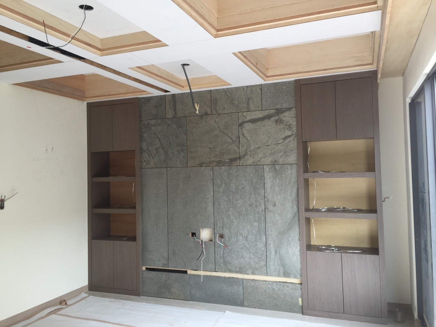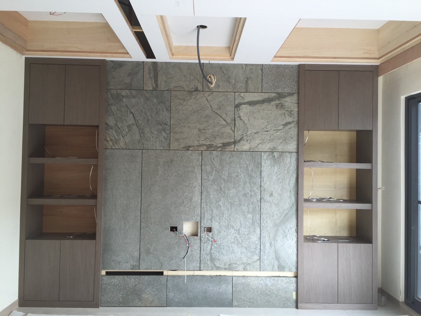 木作造型天花板+TV牆+TV高櫃+梯側造型隔屏+沙發背牆+沙發高櫃
