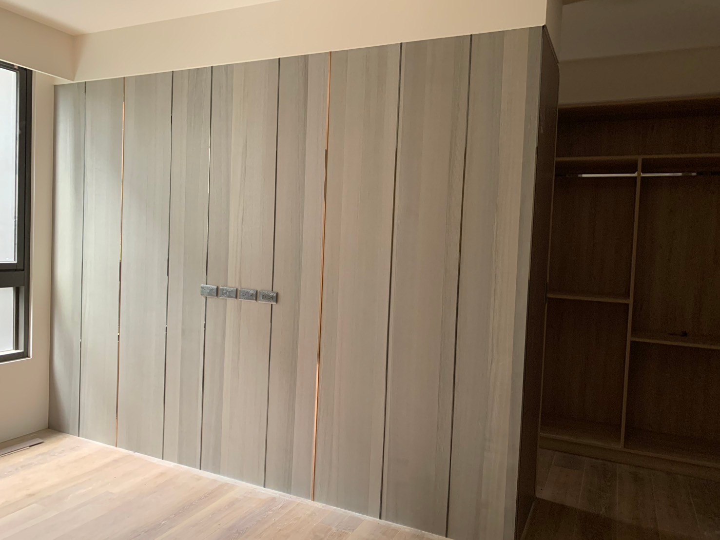 主臥TV牆+床頭背牆+床左右側高櫃+更衣室隔屏+側拉門