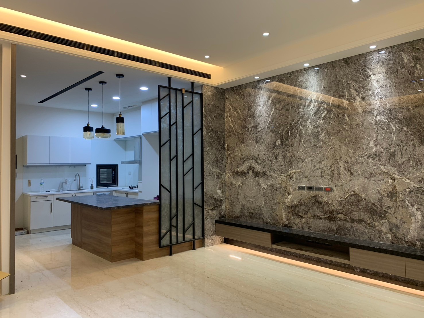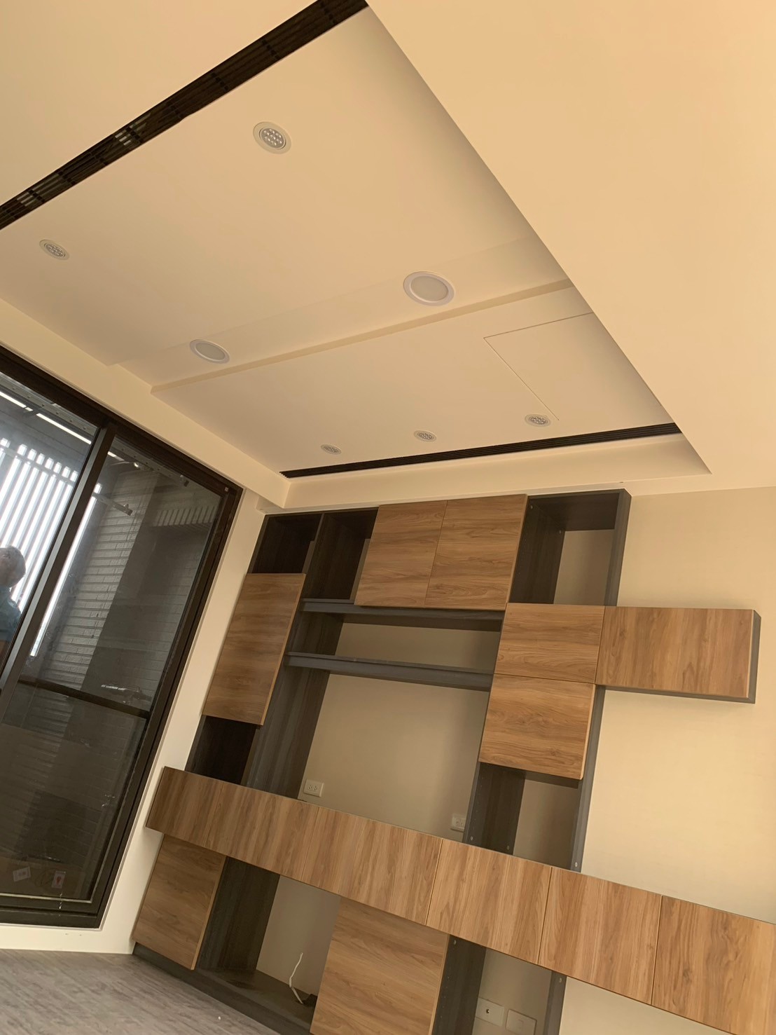 木作項目:透天全1-4樓造型天花板+客廳造型TV牆+TV牆側櫥櫃+鋁框玻璃屏風+餐廳中島櫃